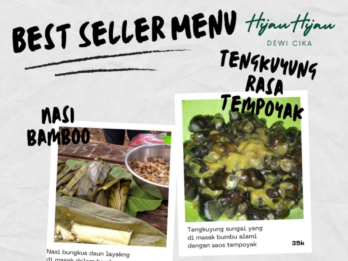Menu hijau hijau ini di ambil dari konsep alam, karena bebahan dasar semuanya dari ketersediaan di alam, seperti tengkuyung sungai, tempoyak dari buah durian, keladi, dan nadi bungkus daun layakng di masak dalam bambu dan ubi tumbuk yang di masak dalam bambu juga di atas bara api