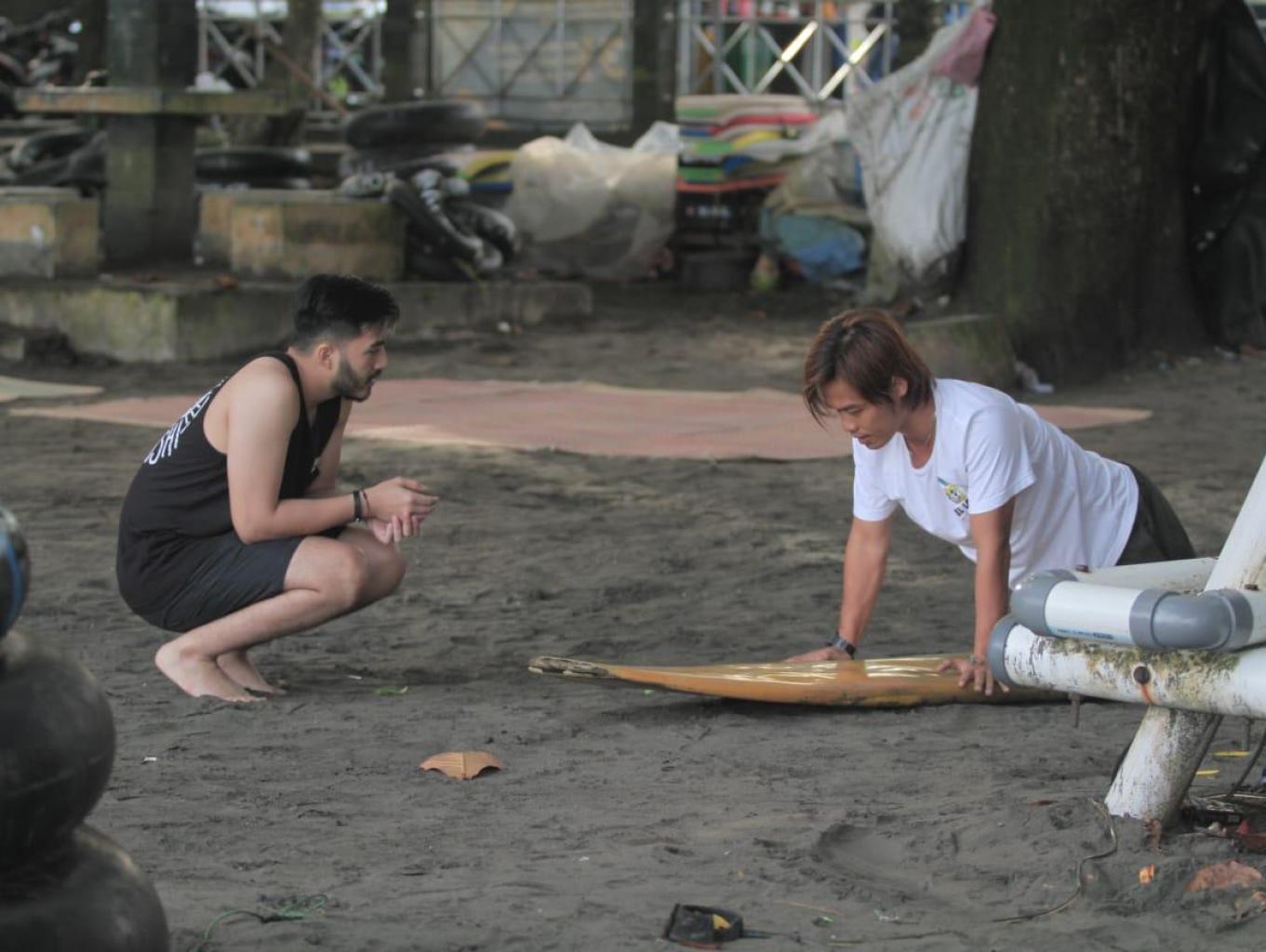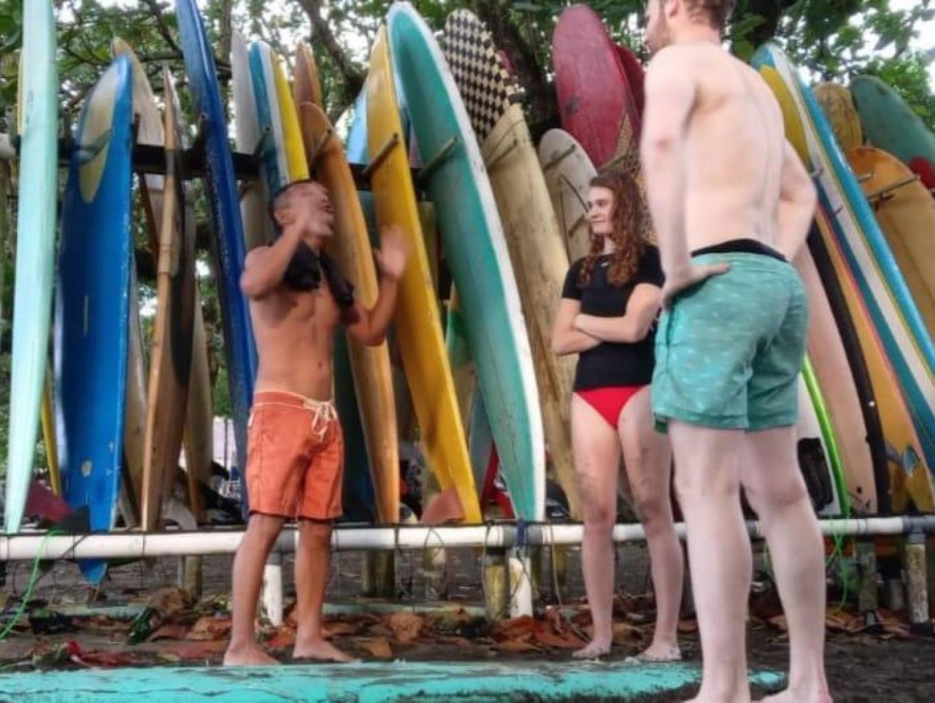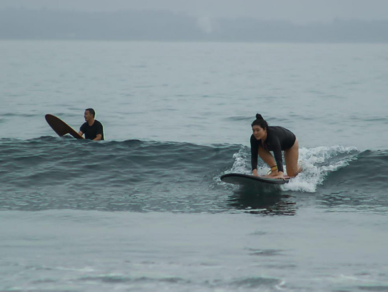 Edukasi pembelajaran surfing bagi wisatawan, dengan intruktur kelompok pemuda pantai yang tergabung di BSC (Batukaras Surfing Club)